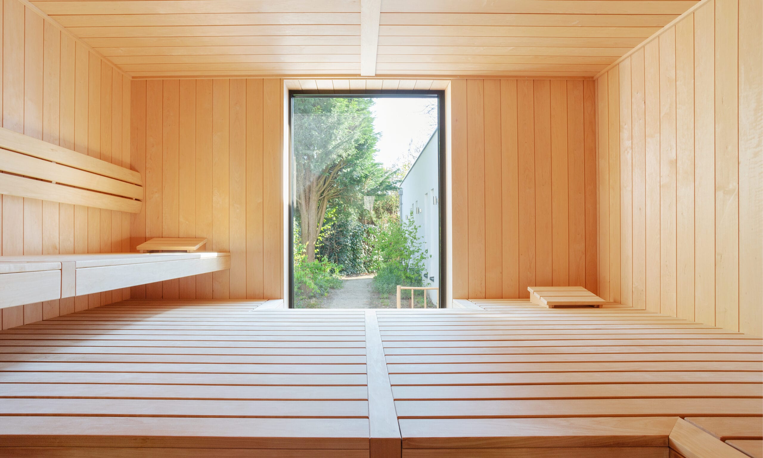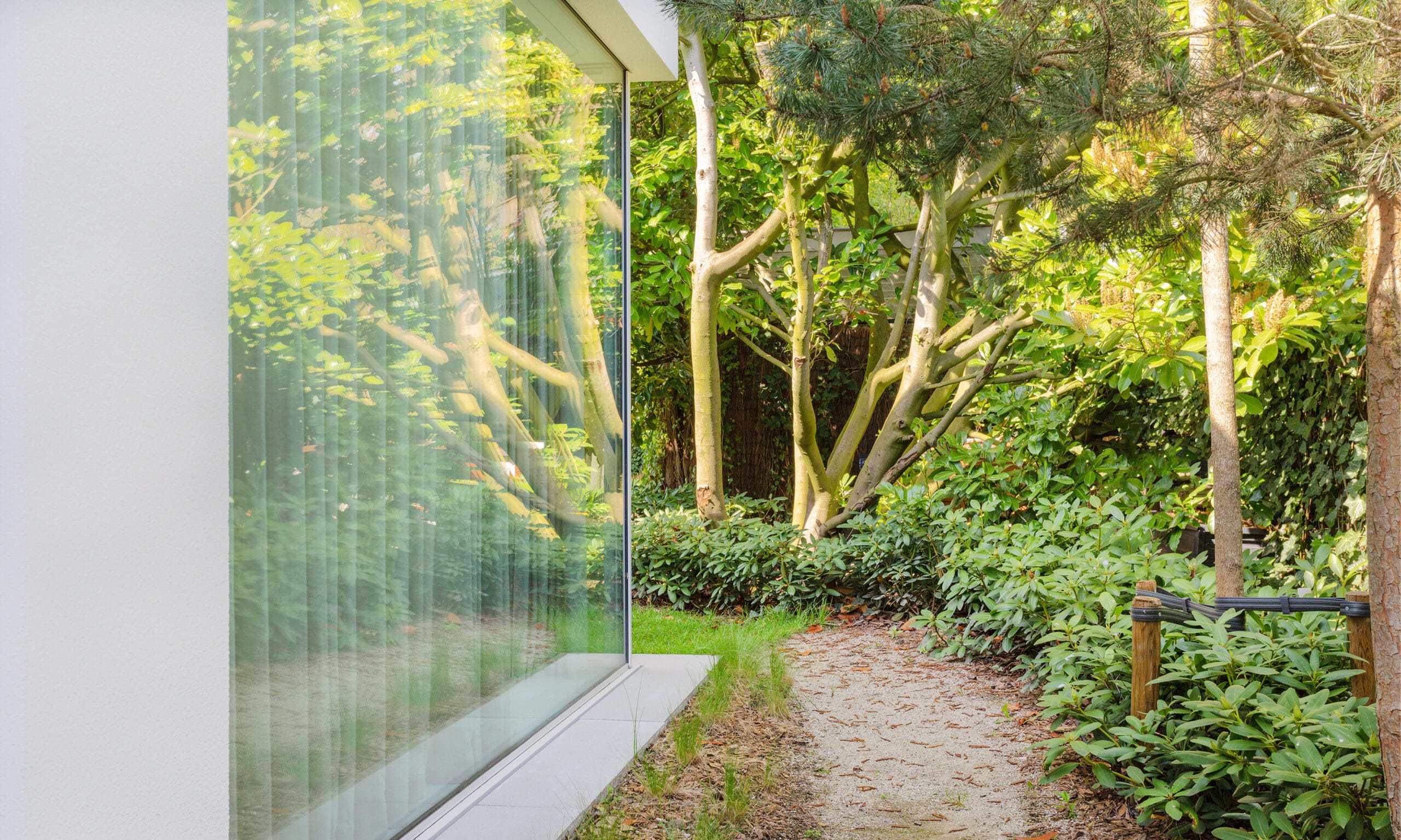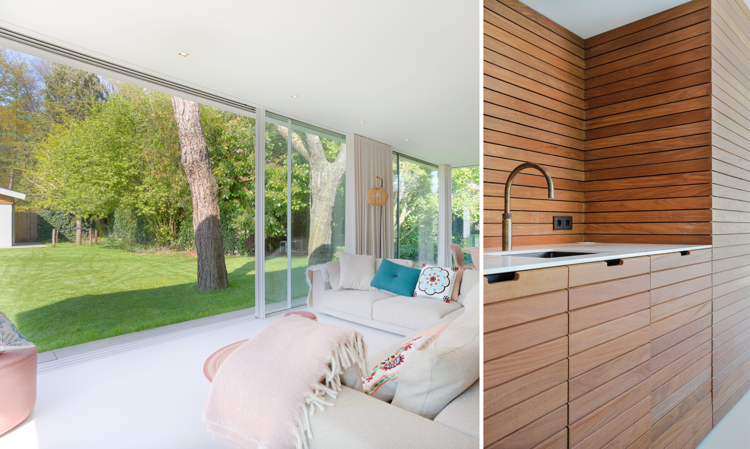 Het bovengrondse bouwvolume met tuinkamer en wellness-ruimtes is vormgegeven als een paviljoen met maximale transparantie. De bewoners hebben alle openheid naar buiten en beleven zowel tuin als wellness optimaal.